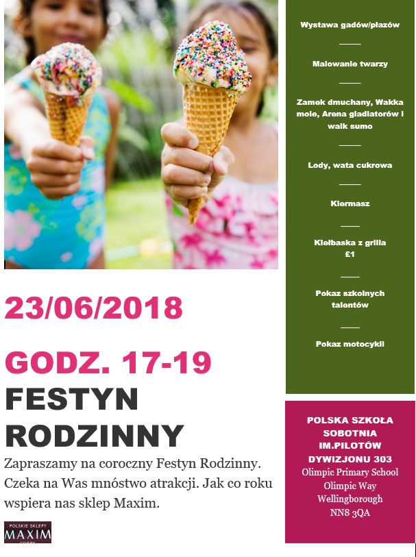 Po roku ciężkiej pracy czas na zabawę. Zapraszamy na Festyn Rodzinny. Szczegóły na plakacie. Liczymy na Waszą obecność 😃 Udostępnij: Udostępnij na X (Otwiera się w nowym oknie) X Udostępnij w serwisie Facebook (Otwiera się w nowym oknie) Facebook Lubię Wczytywanie…