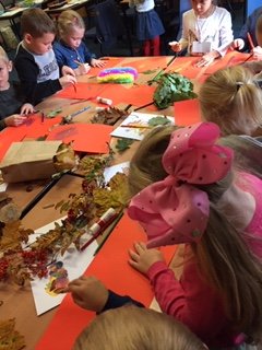 Klasę 0a odwiedziła Pani Jesień, która przyszła do nas z darami, w złocie, czerwieni, sady maluje i lasy przemienia, w jej koszu liście, jarzębina, kasztany i żołędzie . Dzięki niej na świecie kolorowo wszędzie. A gdy odejdzie gdzieś w obce kraje , śnieżna zawieja po niej nastanie! Tymczasem pomogła uczniom wyczarować liściaste zwierzątka i piękne kalkowane bukieciki. Teraz poszła do innych klas zostawiając zapach leśnych przygód.