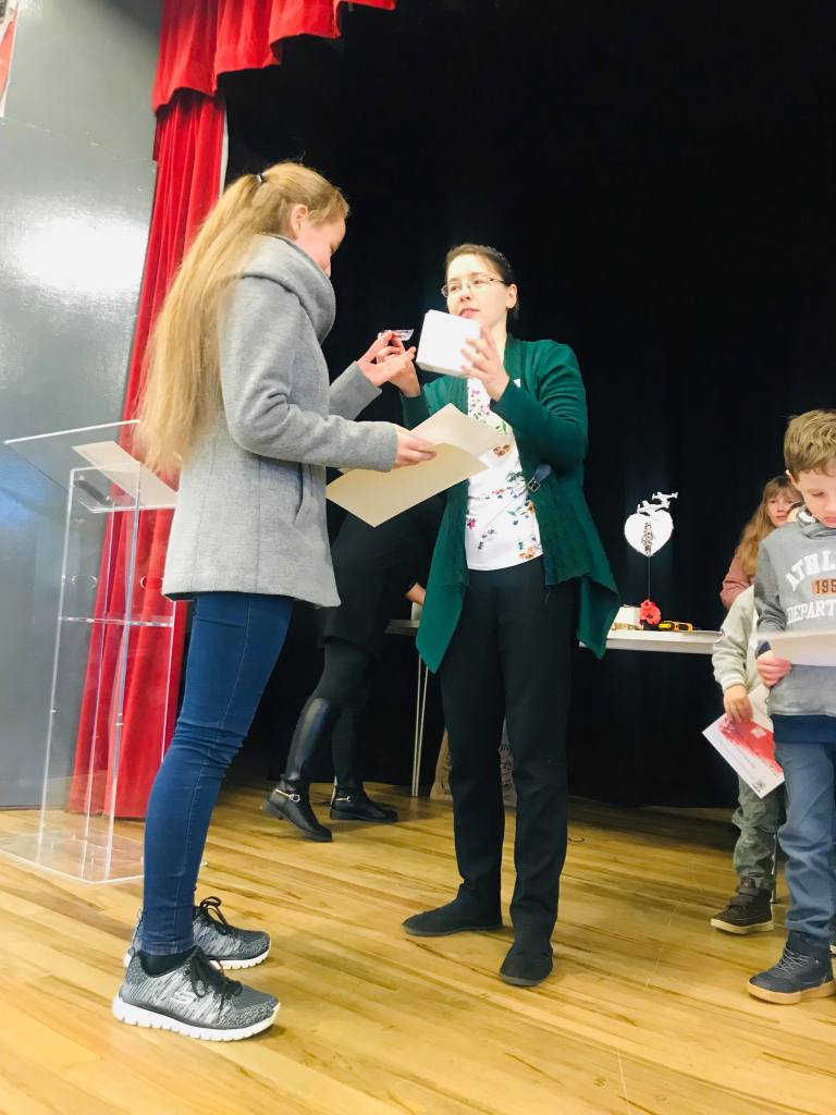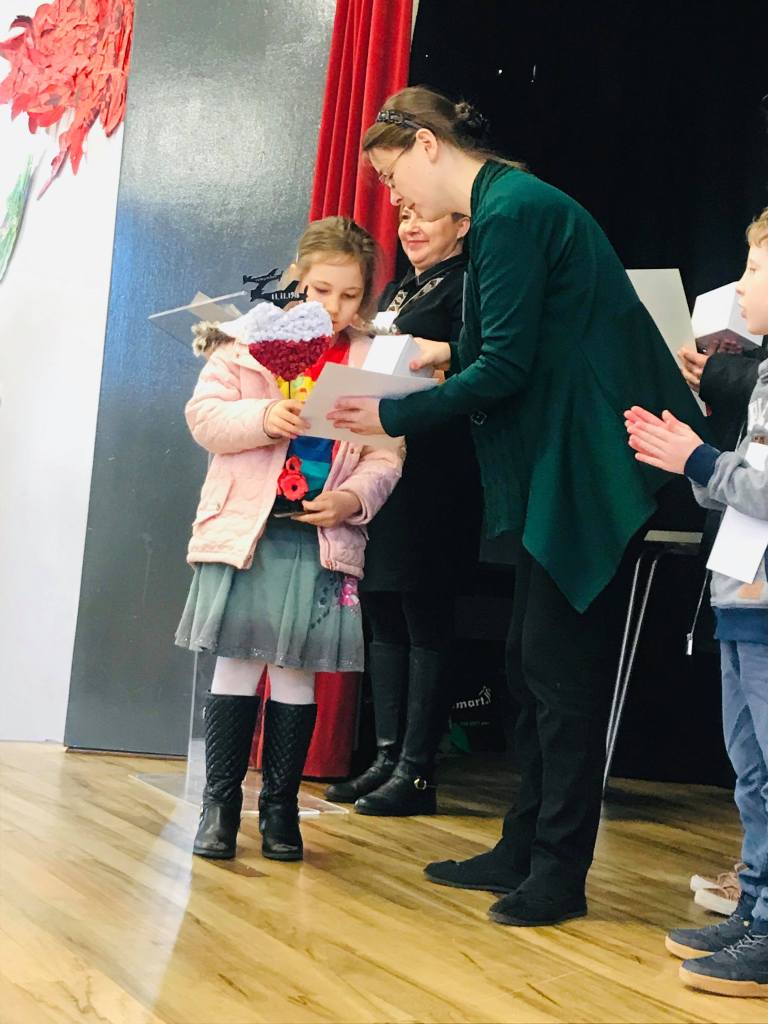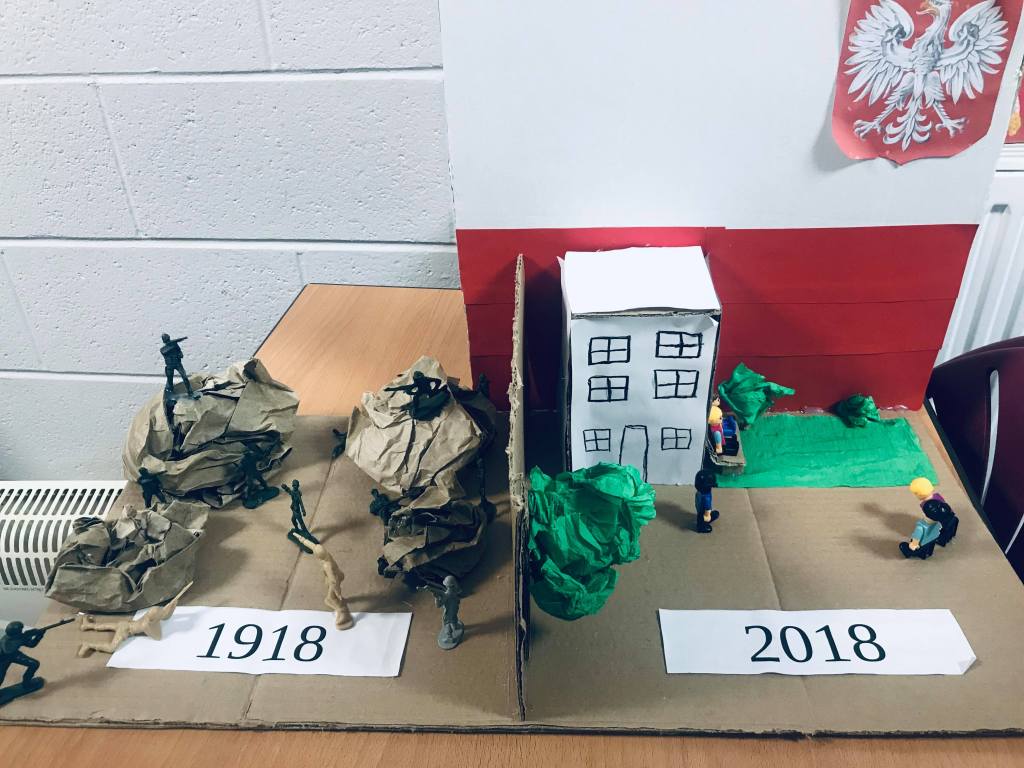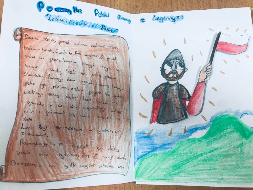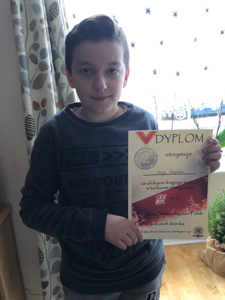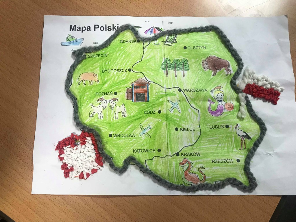 Komisja przyznała również dwa wyróżnienia, które powędrowały do Liliany Sapażnikow za piękne godło, oraz Zosi Ekstowicz za równie piękną mapę Polski. Obie prace pozostaną w szkole i będą nam towarzyszyły podczas oficjalnych uroczystości.