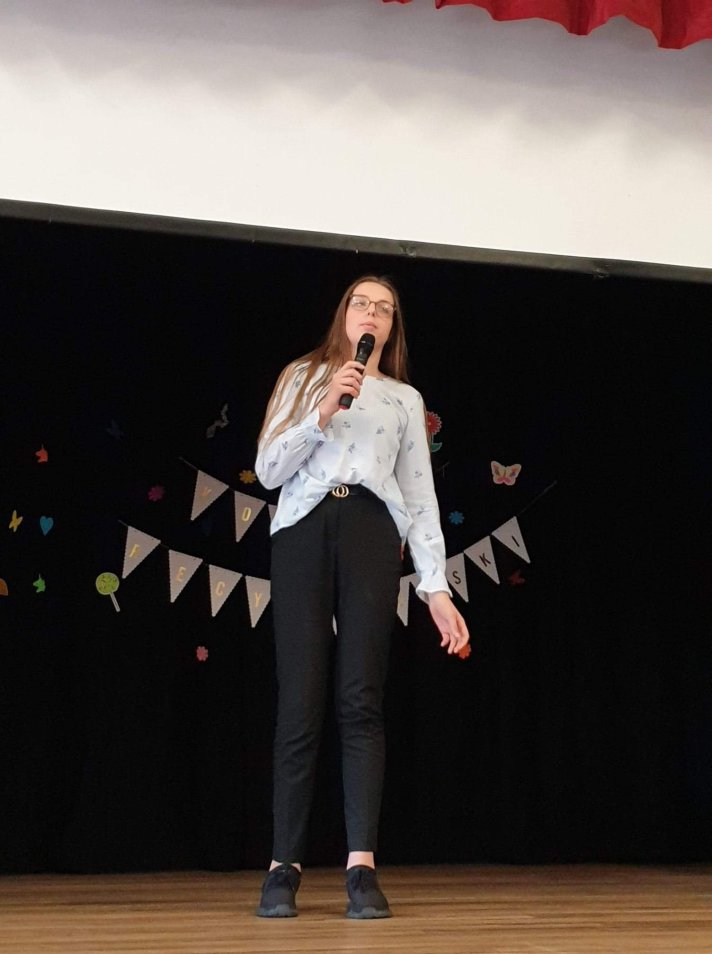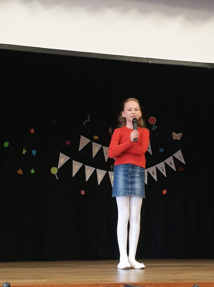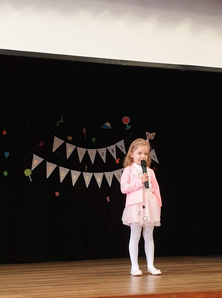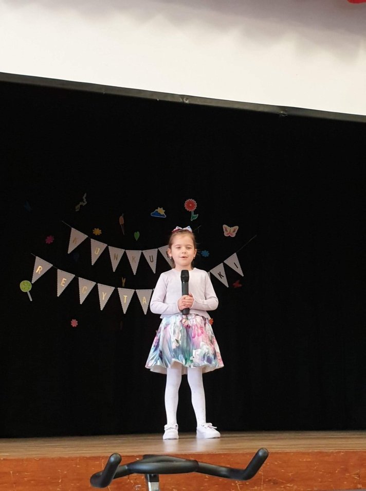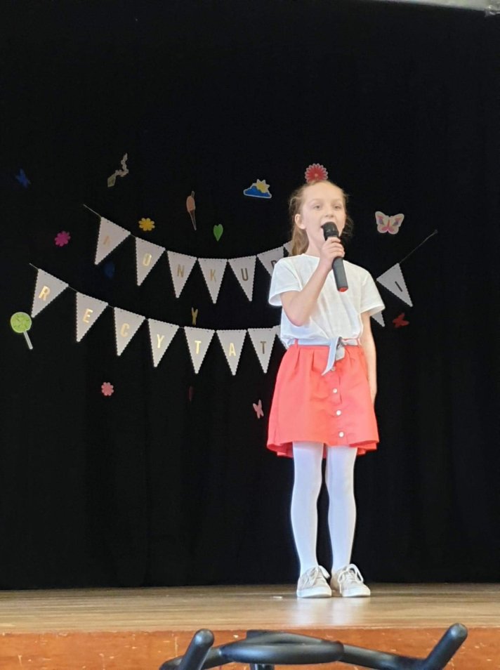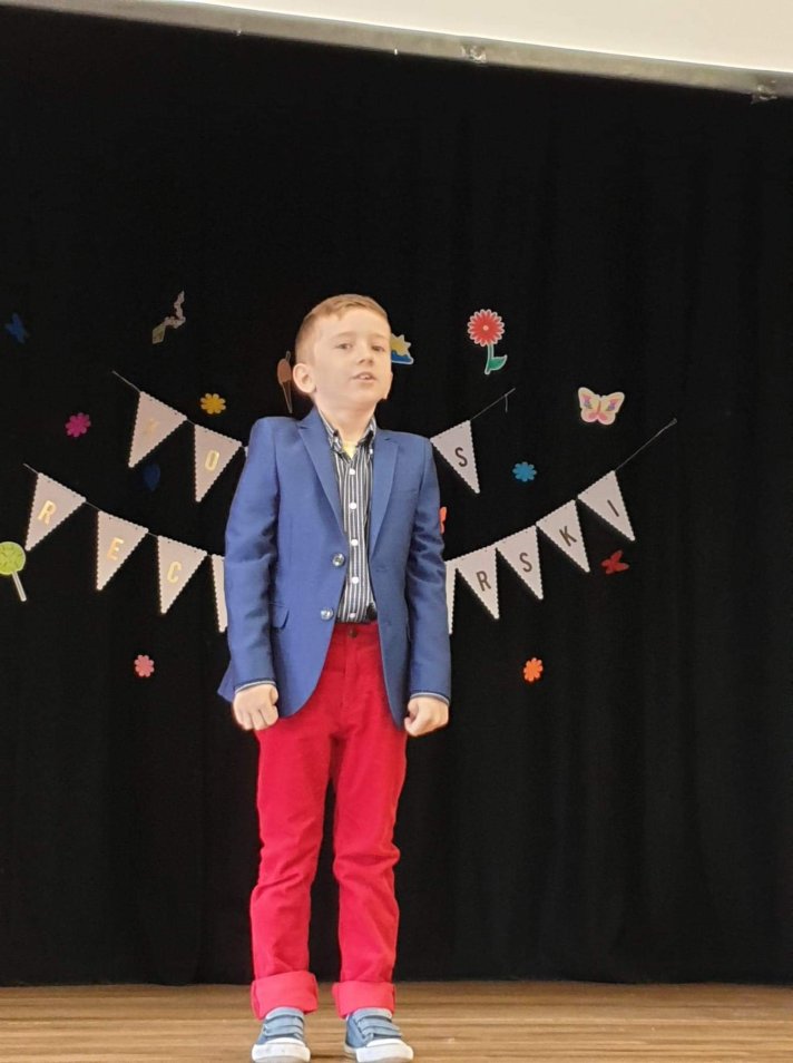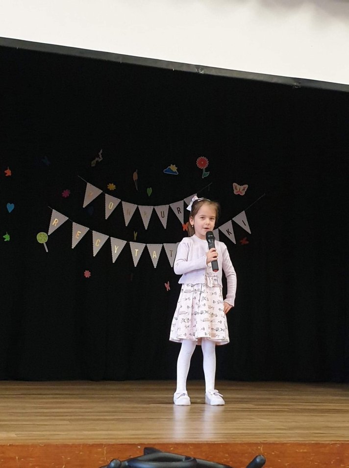 W ubiegłą sobotę odbył się pierwszy szkolny konkurs recytatorski.Wszystkim gratulujemy udziału i odwagi. Dziewczynom z najstarszej grupy dziękujemy za przeniesienie nas w inny wymiar. Wiersze przedstawiły pięknie.. Z ogromną ekspresją, wiedziały o czym mówią, nawiązały dobry kontakt z publicznością….Czas przedstawić wyróżnionych i nagrodzonych uczestników.Wyróżnienie Kornelia Bendyk z wierszem „Na straganie”,3 miejsce Lena Pilarska z wierszem „Kotek” J. Tuwima,2 miejsce Róża Stankiewicz „Dyzio Marzyciel” J. Tuwim,1 miejsce Lidia Stankiewicz „Zosia Samosia” J. TuwimGrupa od klas 1 do 3:Wyróżnienie: Laura Rzesoś „Katar”,3 miejsce Maja Hukaluk „Samochwala”,2 miejsce Maja Hirsz „Żuk”,1 miejsce Oliwier Wiktor „Felek Kartofelek” H. NiewiadomskaGrupa od 4-6:Wyróżnienia:Julia Kukułka „Na zdrowie” J. KochanowskiOliwia Szymajda „Dżoncio” „J. Brzechwa,3 miejsce Julia Smykla ” Kukułeczka”,2 miejsce Julia Sztuka „Spóźniony słowik”,1 Laura Lis „O rodzicach” L. J. KernI grupa najstarsza od klasy 7 do A level:3 miejsce Julia Michniewska „Rozmowa wieczorna” A. Mickiewicza,2 miejsce Karolina Gonek „Fortepian Chopina” C. K. Norwid,1 miejsce Oliwia Nitecka „Odnaleźć samego siebie” T. Różewicza