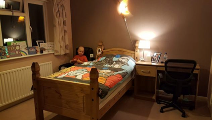 W październiku stan Kacpra poprawił się na tyle,że mógł wrócić do domu. Powrór do domu generował kolejne koszty i to dzięki między datkom zebranym w szkole ( 1040 funtów) Kacper dostał specjalistyczne łóżko.