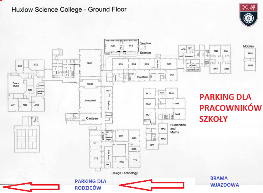 Parking dla rodziców jest usytuowany za szkołą. Po wjeździe na teren szkoły , za czerwoną bramę, prosimy skręcić w lewo i pojechać prosto. Rodzice z Rady Rodziców będą Państwa kierować.