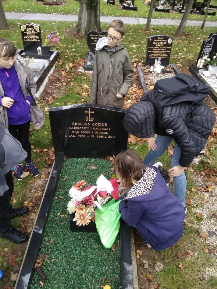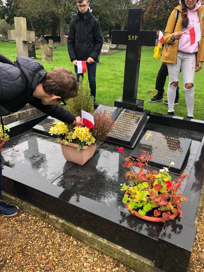 Takie hasło przyświecało w sobotę uczniom klas VII i GSCE 2. Przy stuprocentowej frekwencji stawili się na cmentarzu w Wellingborough by wraz z nauczycielkami, jedną z Mam-Panią Agnieszką Król oraz Martą i Konradem Sokołowskimi z Lokomotywy w Northampton zadbać o groby Polaków. Zadanie nie należało do łatwych. Groby najpierw trzeba było odnaleźć. Czasem malutki szczegół zdradzal, że spoczywa tam Polak. Czasem należało wyszorować starą warstwę porostów, by odczytać napis. Czasem musieli się wykazać znajomością pisma rosyjskiego, czasem przydatna była wiedza historyczna. W ten sposób odnaleziono ok.100 polskich kwater. Uczniowie czyścili, porządkowali, niekiedy naprawili. A pogoda nie do końca była łaskawa. Ostatecznie każdy grób został ozdobiony i zewidencjonowany. Efekty naszej pracy można podziwiac na zdjęciach, ale zachęcamy do spaceru na cmentarz. Warto brać przykład z dzieci i kontynuować, to co one zaczęły. Niech nasza polskość nie przejawia sie tylko w słowach, ale i czynach!