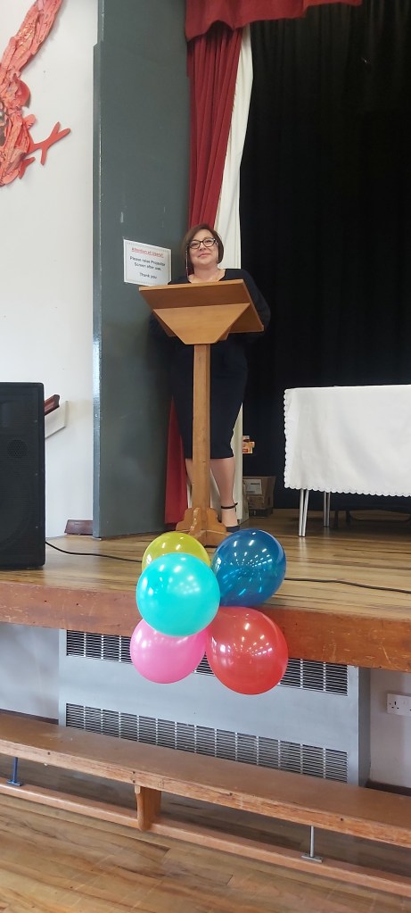 To chyba tyle z mojej strony chciałabym wszystkim życzyć spokojnych i bezpiecznych wakacji, mam nadzieję, że pełni sił spotkamy się ponownie tutaj 10-go września. Teraz proszę aby uczniowie wraz z rodzicmi skierowali się do klas.”