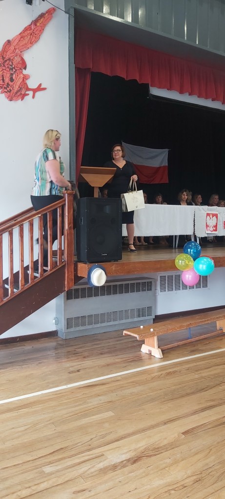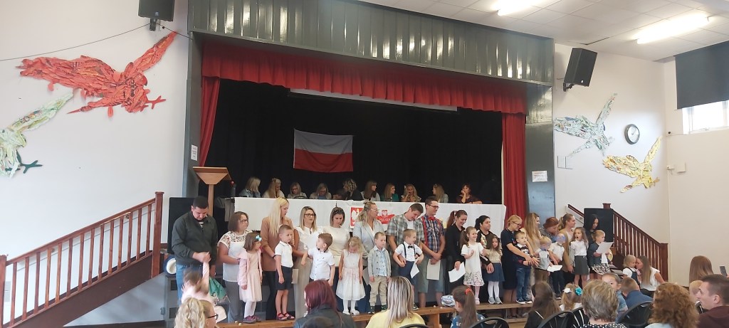 Spotykamy sie tutaj po dwóch długich latach. Był to bardzo ciężki czas dla każdego z nas z różnych powodów, ale chyba takim, który najbardziej nam dokuczał to była izolacja, brak kontaktu z najbliższymi, przyjaciółmi, kolegami i koleżankami w klasach. Dlatego z tego miejsca chciałam Wszystkim podziękować za to, że wytrwaliście z nami, że tak jak my wierzyliście, że będziemy mogli wrócić do klas. Dziękuję każdemy z naszych uczniów za to, że zjawiacie się w soboty w szkole, często rezygnując z tego powodu z dłuższego snu lub spotkań z przyjaciółmi. Czasami z większą lub mniejszą ochotą wstajecie w sobotę rano, żeby przez 3 godziny uczyć się języka polskiego, poznawać nasze tradycje i naszą historię. Jestem z Was naprawdę dumna. Dziękuję bardzo rodzicom, za to że motywujecie swoje pociechy, że widzicie sens w tym co robimy i wspiercie nas w naszych działaniach. Serdecznie dziękuję całemu gronu pedagogicznemu za ciężką pracę, za ten rok który pokazał jakie „szkody” pandemia wyrządziła w edukacji naszych dzieci. Za to, że pomimo poważnych trudności nasze Panie się nie poddały i cały rok dzielnie walczyły o naszych uczniów.